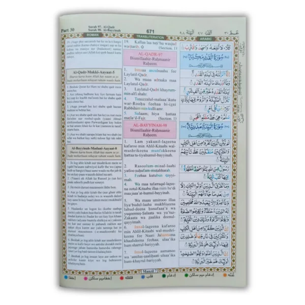 The Holy Quran (Roman English Colour Coded Tajweed Rules)